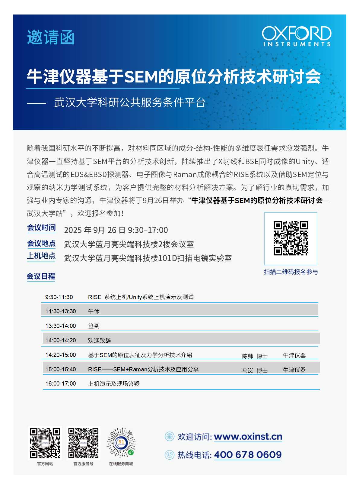 邀请函 ——牛津仪器基于SEM的原位分析技术研讨会