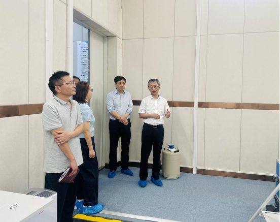 平台副主任李丹阳围绕平台建设历程、常态化运行机制、大型仪器设备共享体系及科研支撑成效等核心内容,向考察组作了全面且细致的介绍。随后,考察组一行深入平台各大型仪器机组现场,近距离参观冷冻电镜、球差电镜等关键核心设备,直观了解设备性能、运行状态及在科研项目中的实际应用场景。在实地查看过程中,考察组就平台仪器共享机制、技术队伍建设、实验数据处理等问题向李丹阳进行了详细了解。