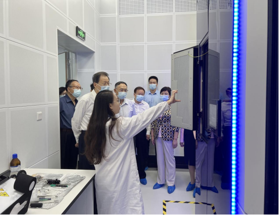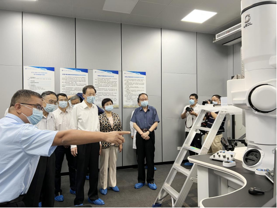 平台主任王建波介绍了平台建设发展现状以及在大型仪器设备共享、科技创新等方面开展的特色工作。来访领导参观了扫描电镜、透射电镜、冷冻电镜等大型仪器设备机组,深入了解了平台在优化资源布局、创新平台搭建、提升共享服务等方面的创新举措。