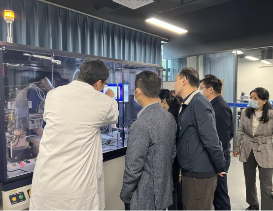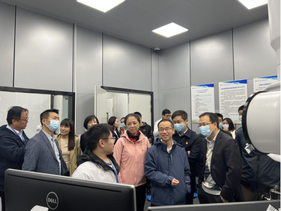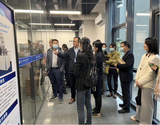 平台副主任应志豪向机关党委一行详细介绍了平台的建设历程、组织架构、运行管理机制、现有仪器设备以及支撑服务开展等情况,并陪同大家参观了扫描电镜、透射电镜、冷冻电镜、拉曼光谱仪、核磁共振波谱仪等大型仪器设备,支部书记周晓东、李雷老师、李丹阳老师分别就自己所负责机组的各类仪器进行了基本原理和应用范围的讲解。大家结合各自的工作领域就平台运营成本、样品数据量大小、仪器自动化、科技壁垒等问题与平台工作人员进行了深入交流。