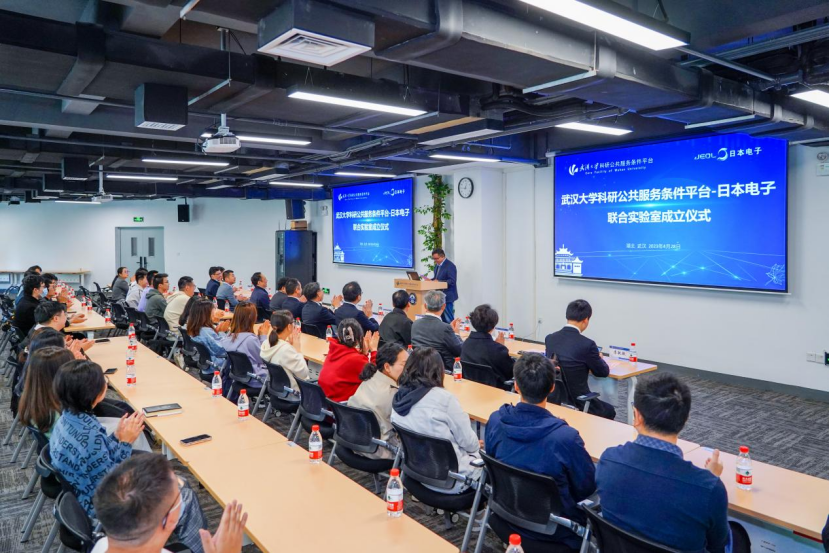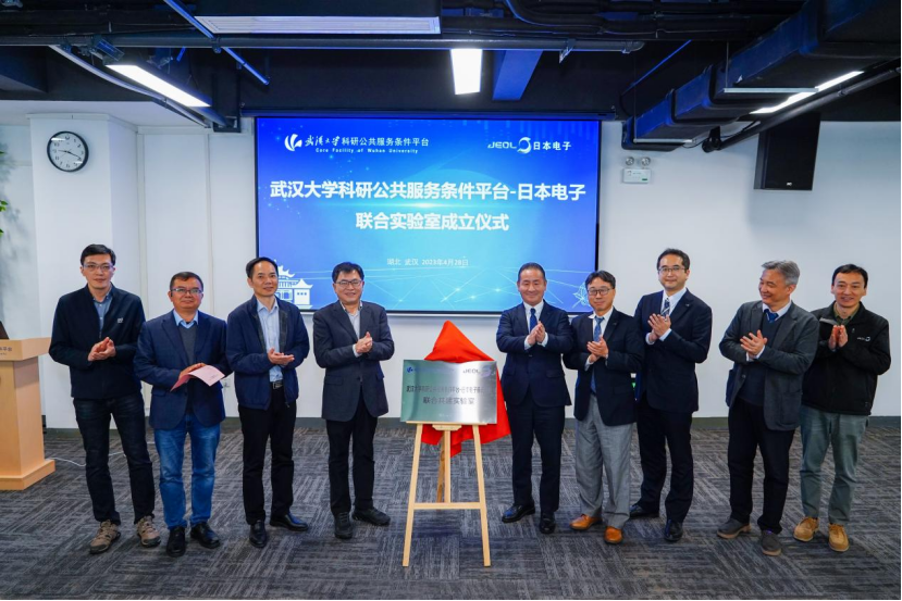 点点app校长助理陈慧东,实验室与设备管理处处长毕卫民,点点手机版下载安装官网主任、湖北省电子显微镜学理事长王建波教授,点点手机版下载安装官网教授级高级实验师周晓东,物理科学与技术学院郑赫教授,物理科学与技术学院高级实验师贾双凤,日本电子公司总经理杉本圭司,销售总监张晓露,售后经理永幡亘平,电镜技术首席专家苗澍,透射电镜产品经理袁建忠,半导体事业部高级销售经理严雪,华中区域销售经理李敏敏以及校内外专家同行参加了揭牌仪式。仪式由王建波教授主持。