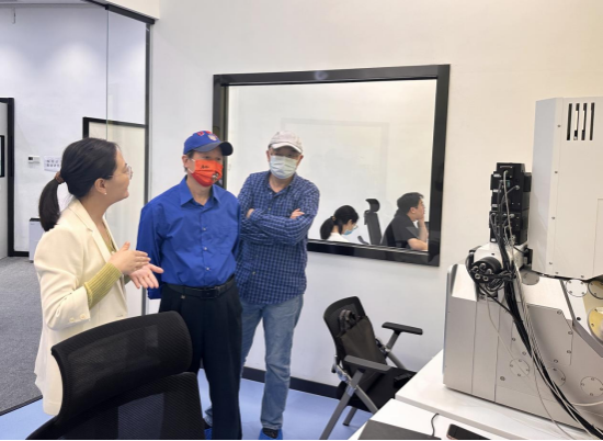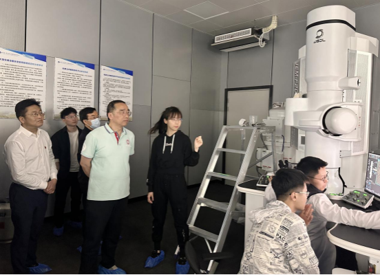 平台主任王建波对各位领导的到来表示热烈欢迎,曾依老师详细介绍了平台的整体运行情况和主要仪器设备并陪同参观了平台X射线、扫描电镜、透射电镜机组,对各类仪器设备的应用领域和运行情况做了进一步介绍,刘朝晖一行与机组人员就仪器配置、应用领域、自主上机培训等方面的问题进行了深入交流。