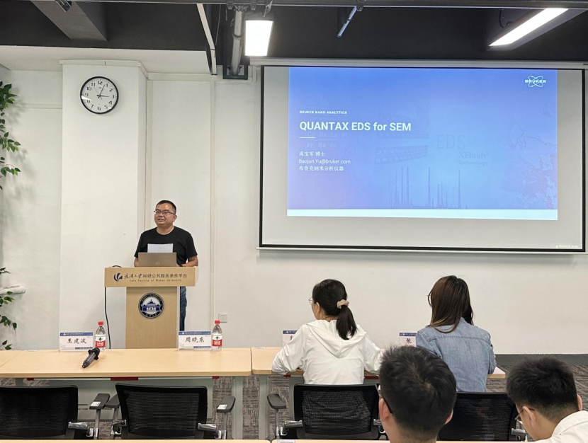 平台主任王建波对布鲁克各位专家的到来表示感谢和欢迎,布鲁克纳米分析部亚太区总裁焦汇胜博士对公司基本情况进行简单介绍。随后布鲁克纳米分析产品应用经理禹宝军博士和纳米分析部应用科学家韦家波分别为大家带来了题为《QUANTAX EDS for SEM》和《先进的EBSD/TKD表征技术及其应用》的报告;516日,在尖端科技楼101D扫描电镜实验室,布鲁克应用工程师分别对平插式能谱仪、EBSD、同轴TKD等高端仪器进行了应用高阶培训及用户交流活动,并针对校内部分师生的疑问进行现场解答。
