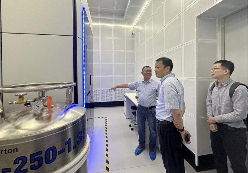 平台主任王建波对各位领导莅临指导表示热烈欢迎,详细介绍了平台的整体运行情况和主要仪器设备,并陪同领导们依次参观了X射线实验室、扫描电镜、透射电镜、冷冻电镜机组,并对各类仪器的运行情况和所提供的支撑服务进行了进一步介绍。