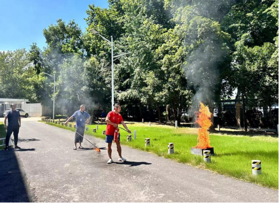 在消防演习结束后,保卫部的老师给大家展示消防器材的使用方法以及扑灭火源的方法;消防演练现场,保卫部的老师首先在准备好的桶内点燃火源,模拟火情情景,在场人员逐个进行操作,切身体验学习使用灭火器消灭火源的过程,让大家做到熟练掌握使用灭火器的方法和注意事项。