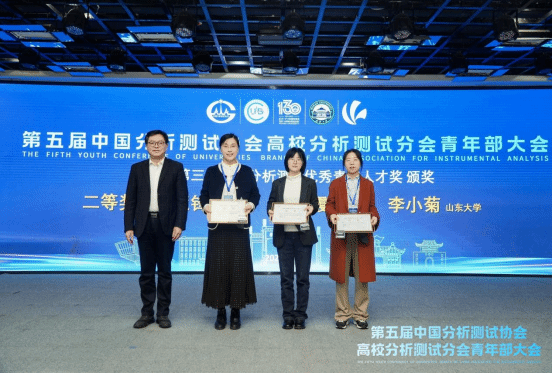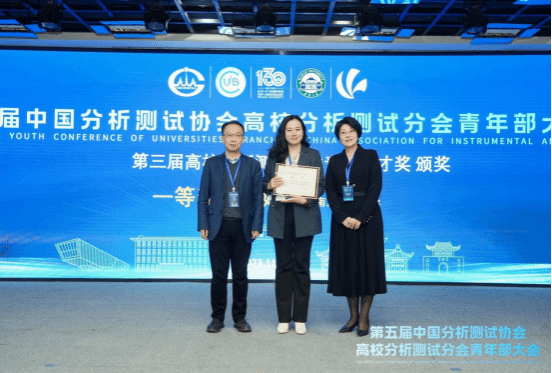 姚文清、陈慧东、李景虹为获得第三届高校分析测试优秀青年人才奖"的获奖者颁奖,并表示祝贺,希望他们在未来的工作中能够继续保持优秀的成绩,为我国分析测试事业的发展再创辉煌。同时,也希望广大青年分析测试工作者要以他们为榜样,积极投身科研工作,不断提升自己的专业素养和分析测试水平,为我国的科技事业做出更大的贡献。