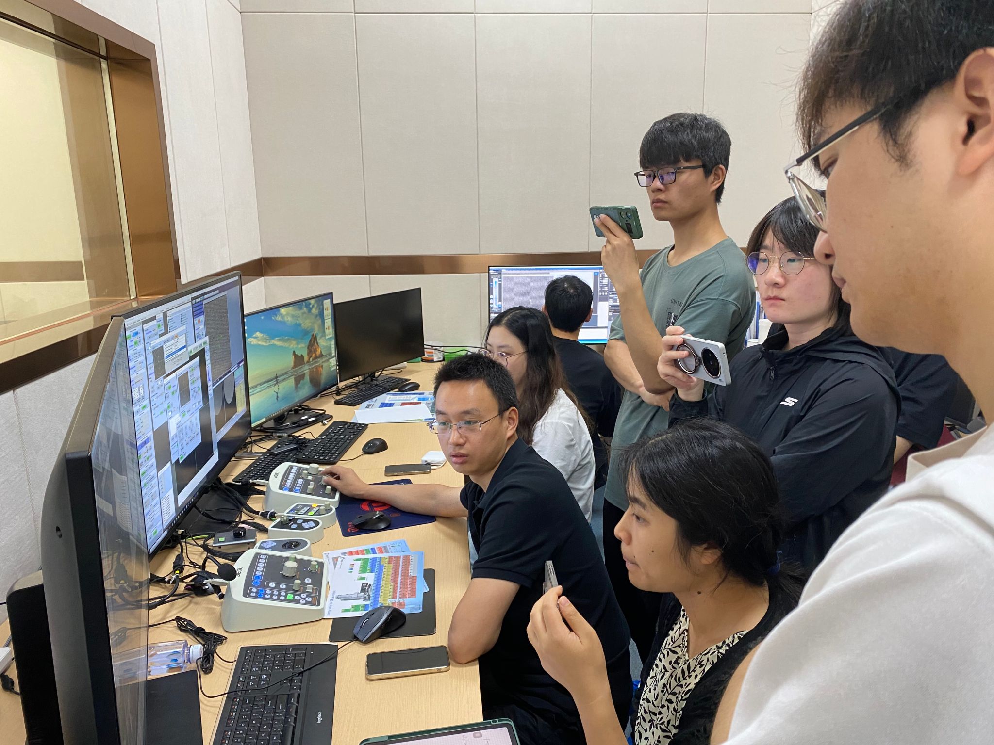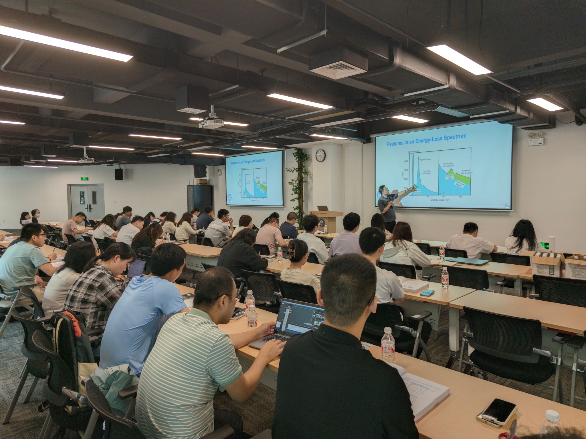 本次培训重点讨论了在(S)TEM模式下EELS谱的采集和数据分析技术,包含课堂讲学、电脑数据处理和TEM上机操作三个部分,上机部分在平台的JEM-ARM300F2球差电镜上进行,该电镜配备了GIF Continuum 1069(包含EFTEM及高速STEM EELS SI功能)。培训期间,Gatan应用专家袁昊和盛华平进行了理论课程的讲解,随后分组进行了数据处理和上机演示。上机培训过程中,Gatan售后工程师胡佳兴介绍了GIF Continuum 1069的硬件构造和维护,盛华平博士向大家讲解并演示了EFTEM和EELS的数据采集和相关的注意事项。