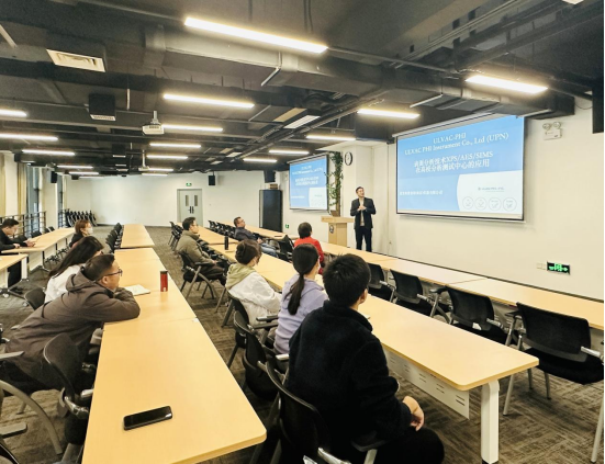 报告结束后,叶经理与参会师生进行了深入交流,对离子束刻蚀中Xe离子源的优势、高能Cr靶在实际粉体样品中的应用以及TOF-SIMS对离子团进行定量分析等问题进行了进一步的探讨。