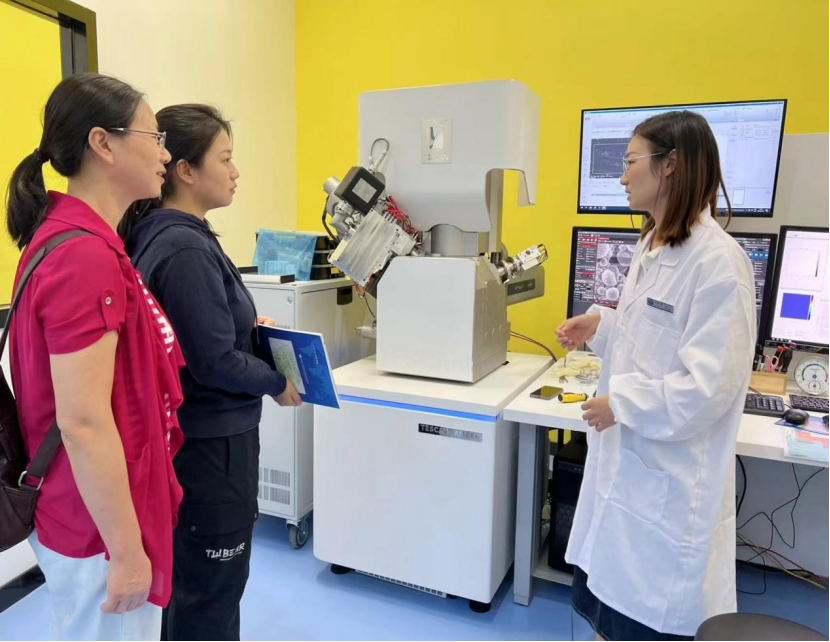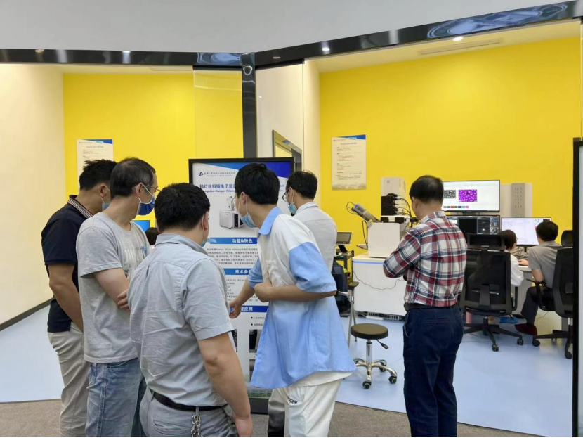 王建波向支部一行详细介绍了平台的建设过程、仪器安装调试、技术团队、主要仪器设备以及支撑服务开展等情况。并陪同支部党员们参观了扫描电镜、透射电镜、冷冻电镜等大型仪器设备,大家纷纷就自己的研究领域与相关的技术人员展开了深入交流。