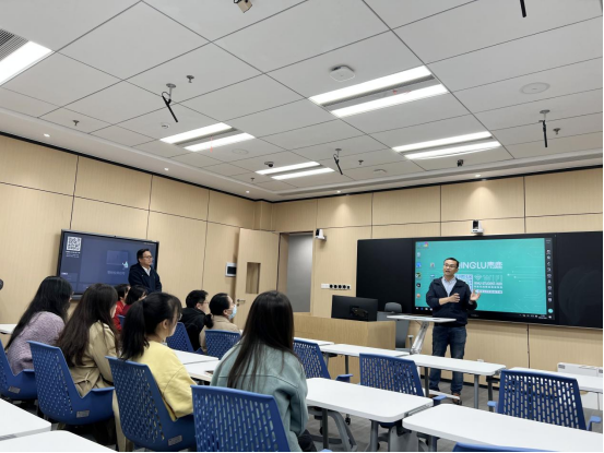 国家网络安全学院党委书记赵波对平台到国家网络安全学院进行参观表示热烈欢迎,以新珈楼的命名来历展开了对学院的介绍。于敏副书记向大家详细介绍了学院的建设历程以及目前的规模。