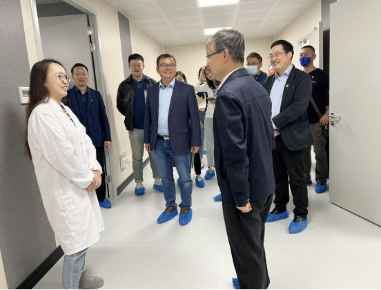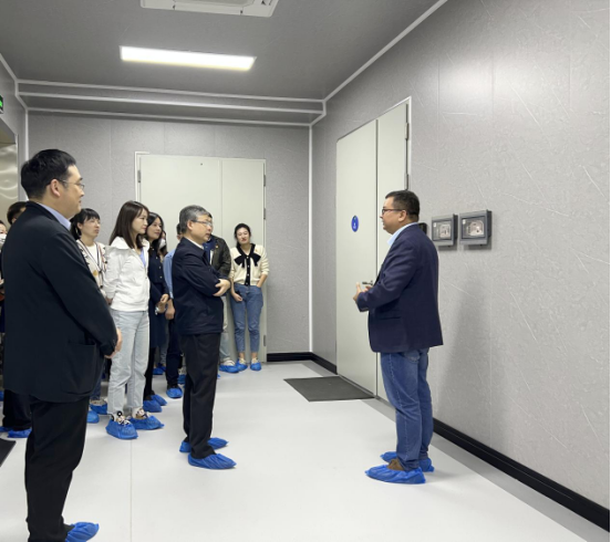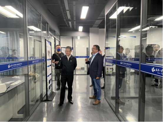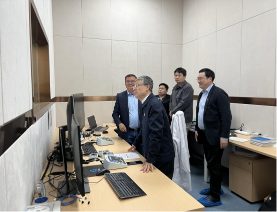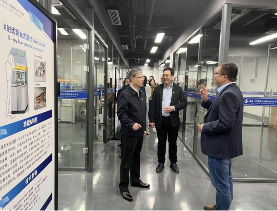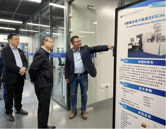 平台主任王建波教授向黄书记一行详细介绍了平台的建设过程、技术团队、主要仪器设备以及支撑服务开展等情况。并陪同支部党员们参观了X射线实验室、核磁实验室、扫描电镜、透射电镜、冷冻电镜等平台大型设备机组,对仪器设备的基本原理和应用范围进行了详细介绍。黄书记一行对技术团队的科研水平、人才晋升通道、大型仪器设备对教学活动的支撑以及实验室运行环境等问题进行了细致的询问,并与平台的技术人员进行了亲切的交流。