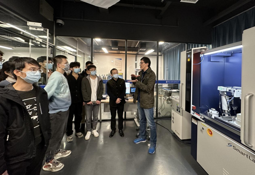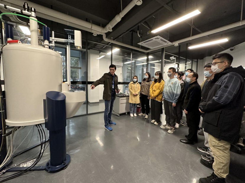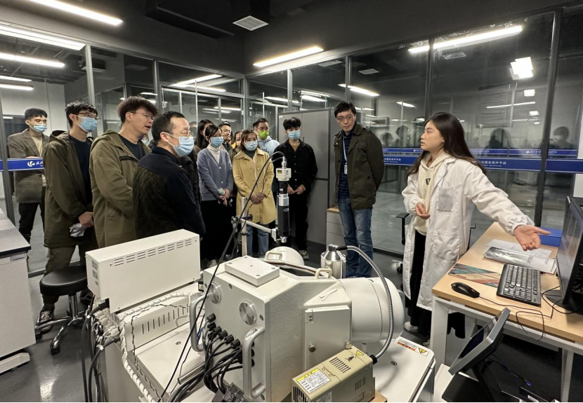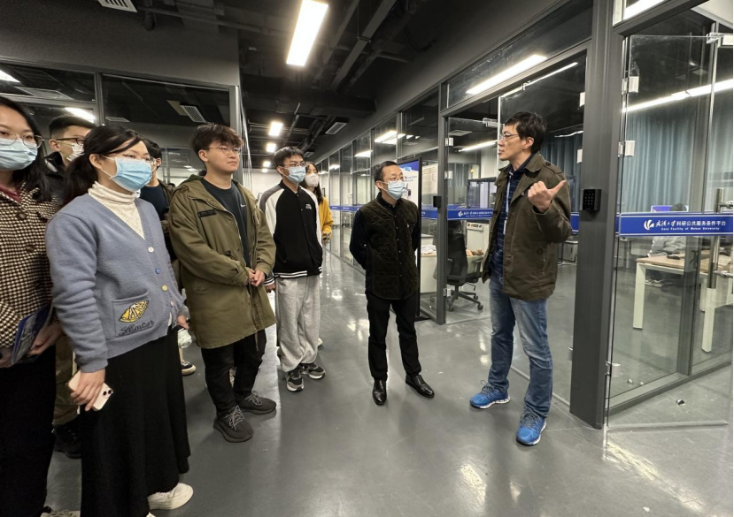 平台主任王建波教授对支部一行的到来表示欢迎,支部书记周晓东教授为大家介绍了平台的运行情况、主要仪器设备以及对科研、教学的支撑情况。支部成员依次参观平台各大型设备机组,详细了解各仪器设备的功能指标、应用范围等方面的情况,并就自己的研究领域与现场技术人员进行了深入交流。