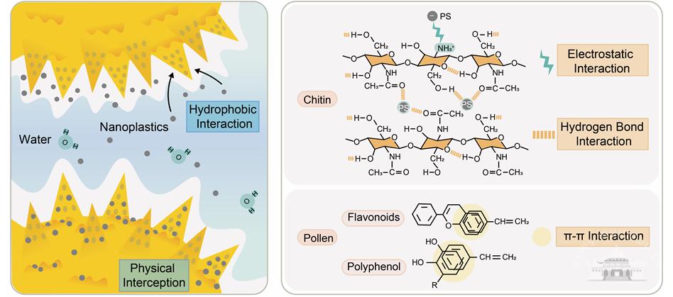 图1.利用花粉和甲壳素的协同共组装策略去除纳米塑料