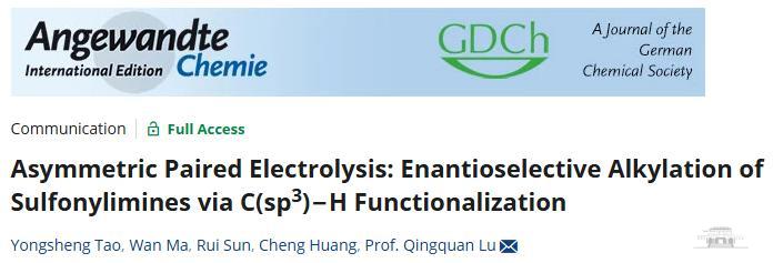 不对称配对电解:通过C(sp3)-H官能团化实现磺酰亚胺的对映选择性烷基化