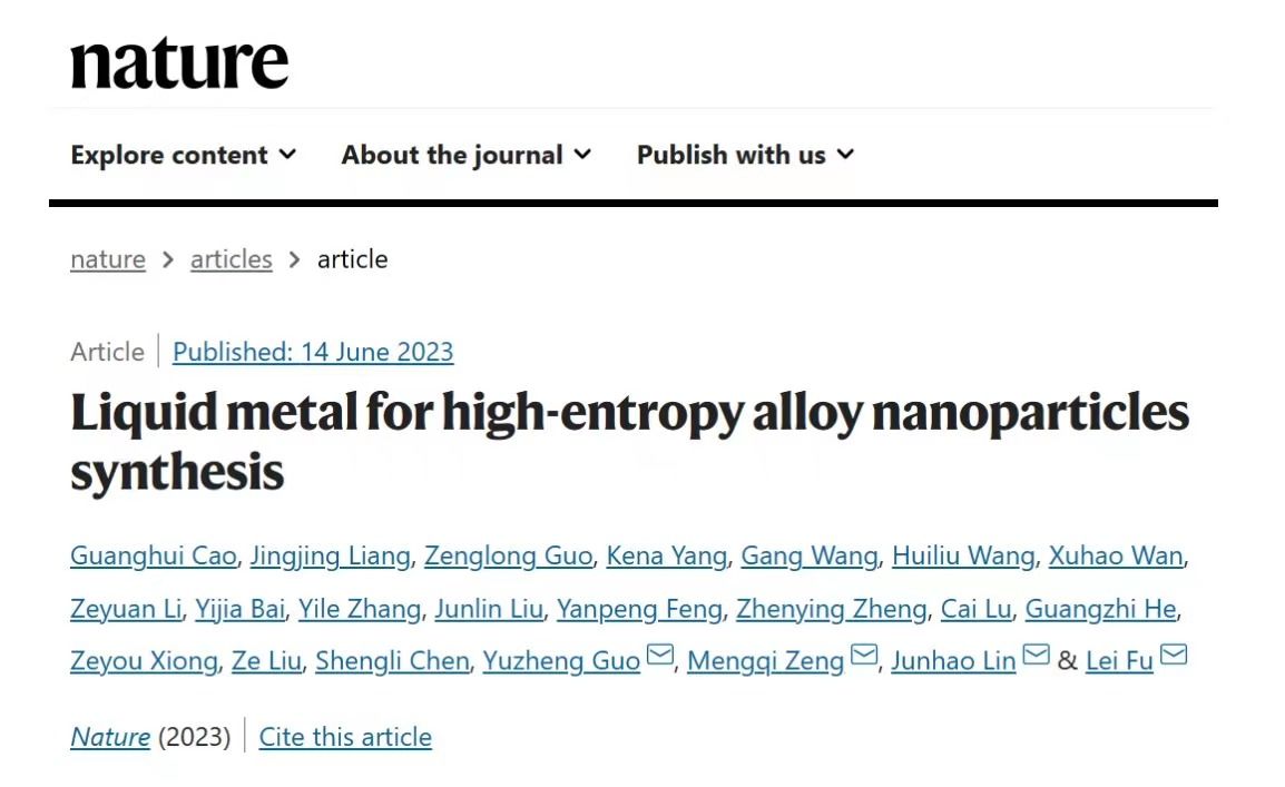 synthesis”(液态金属用于高熵合金纳米颗粒的合成)。
