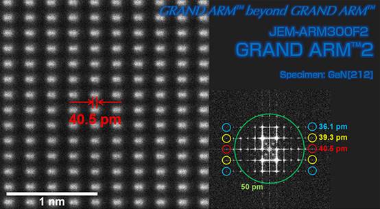 自该系列发布以来,JEM-ARM300F2球差电镜不断刷新分辨率的极限,已获得STEM模式下40.5pm的超高分辨率。