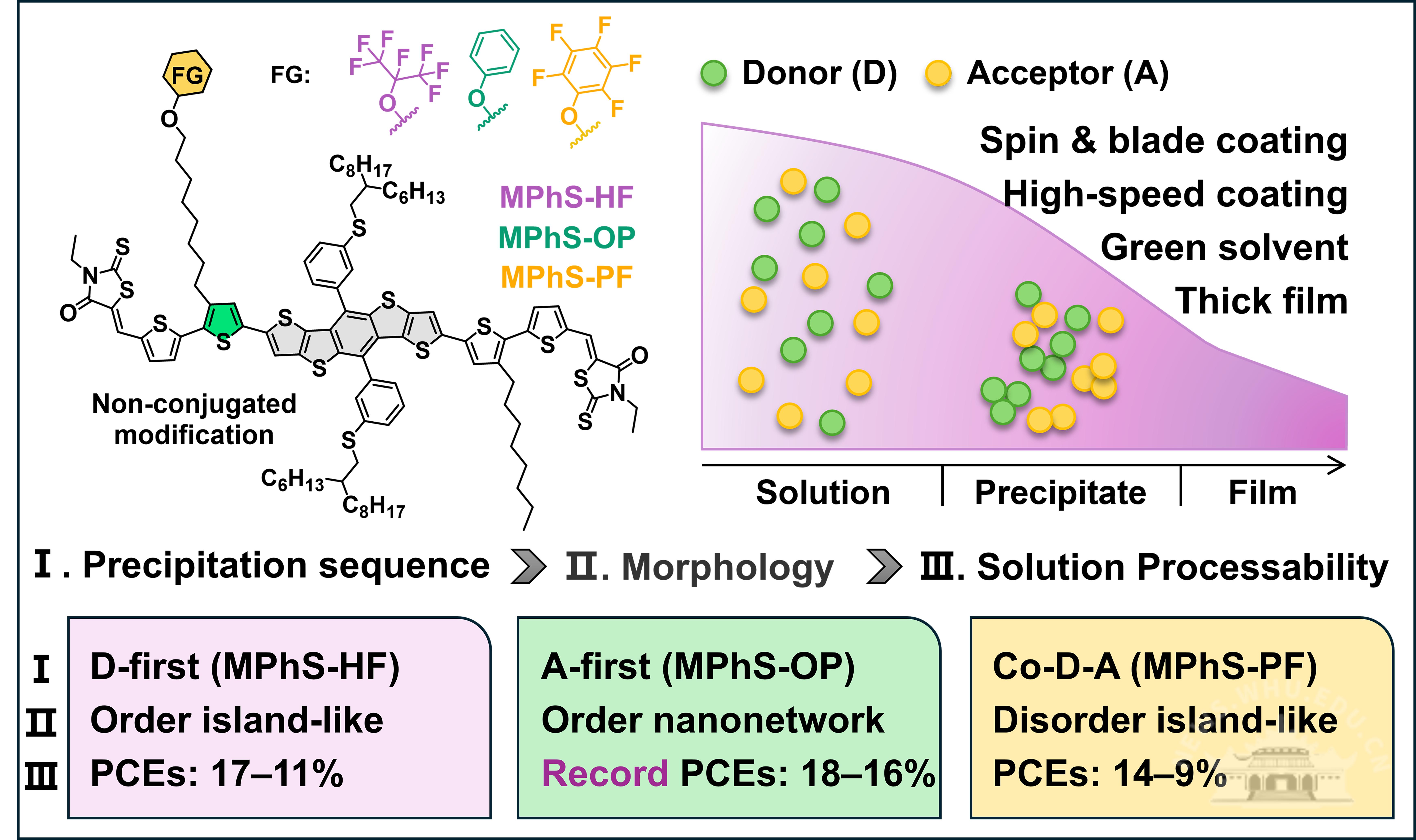 闵杰课题组实现可溶液加工的高效率全小分子太阳能电池