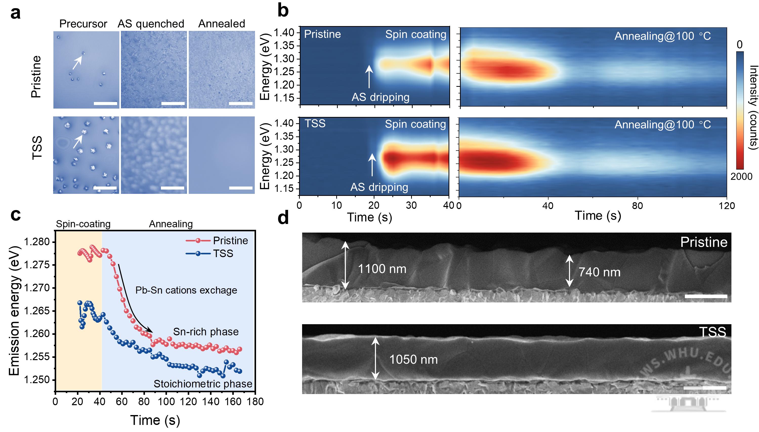 2025.09.06(转自武大新闻网8月29日,《自然·通讯》(Nature Communications)在线发表了点点app物理科学与技术学院教授王植平课题组在钙钛矿太阳能电池领域最新研究成果。该工作解决了锡铅混合钙钛矿电池领域中高质量微米级厚膜制备困难以及Sn偏析严重的关键技术难题,器件效率和稳定性均达到国际一流水平,为钙钛矿电池的产业化进程提供了重要的理论基础和技术支持。论文题为“Solvent engineering enables tin-lead perovskite films with ...